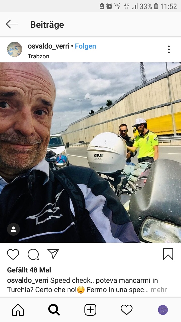 Mein Bauchgefühl hat recht behalten, denn am letzten Tag in der Türkei habe ich Osvaldo aus Mailand kennengelernt (Wie es sich so Gehört, sind wir beide geblitzt worden und haben uns bei der anschließenden Polizeikontrolle kennengelernt)