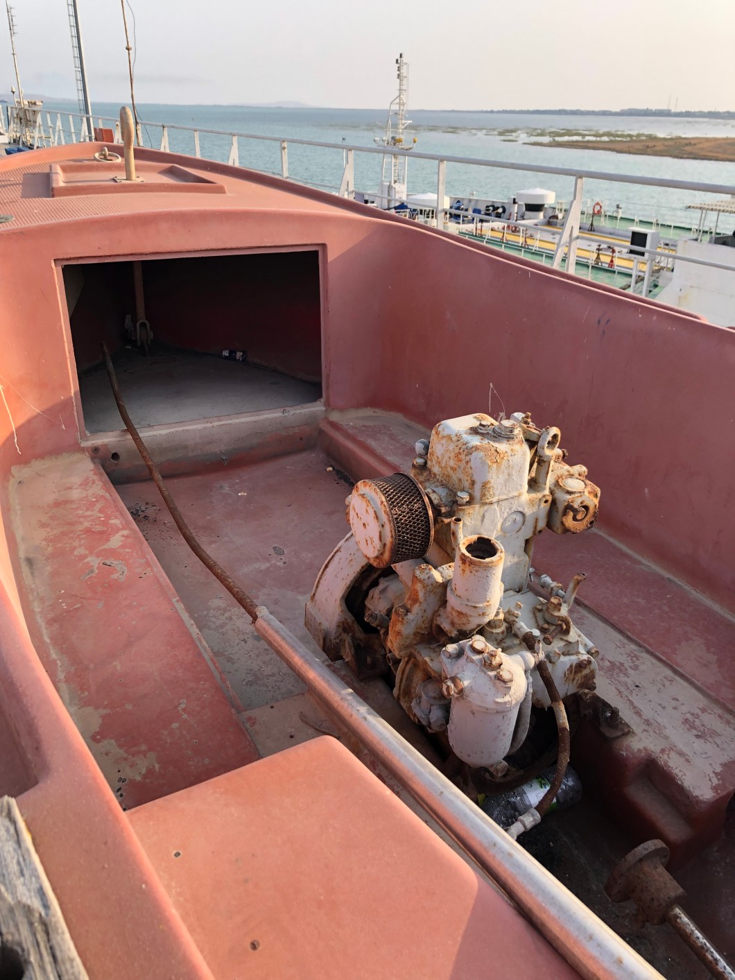 Da es am Schiff keine nennenswerten Sicherheitsvorkehrungen gibt, konnte sich jeder frei bewegen. Deshalb begutachtete ich gemeinsam mit Osvaldo sogar den Motorenraum und diverse andere Räume.