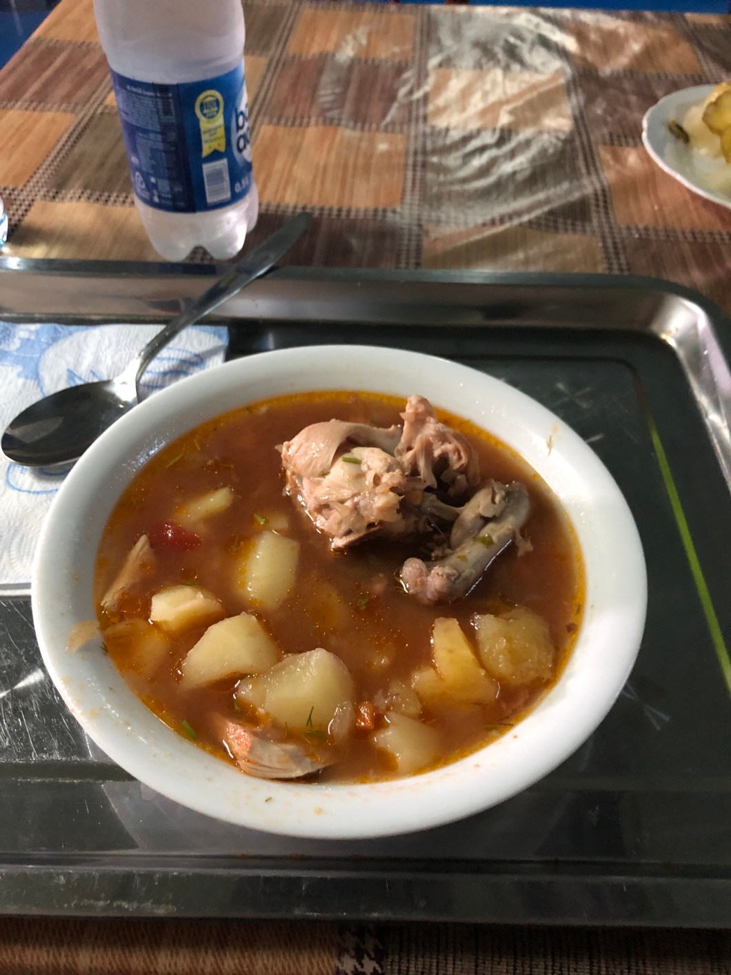 Das Schiff, die „Professor Gül“, legte dann schlussendlich um 19:30 in Richtung Kasachstan ab. Gegen 20 Uhr gab es auch schon Essensausgabe in der Küche für alle Passagiere (80% LKW Fahrer und 20% Touristen). Wie im Internet beschrieben, war die erste Hauptmahlzeit gekochtes Huhn mit Kartoffeln und am nächsten Tag gebratenes Huhn mit Nudeln und zum Abendessen gebratenes Huhn mit Reis.